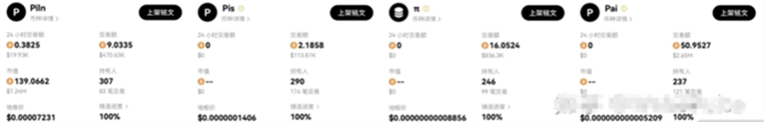 现在Pi币社区主要推的其实是这个东西了,因为知道那个没戏,所以整天各种社群和广告推广里面其实就是所谓的Pi币铭文,也就是这个MEME币PIIN。