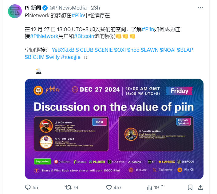 Pi Network官方是没有搞所谓的铭文的,并且也提示了这些都是虚假的。所以这些PI币铭文是一路货色,只不过现在是PIIN铭文好像是项目方有钱,然后进行了大规模的软文推广,但这个东西屁都不是。